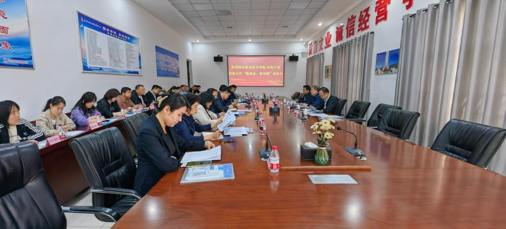 随后,与会人员就加强校地合作,推动“稳就业、促发展”的有关政策制度、双方需求、细节落实及其他有关问题进行了深入交流,陕西华通机电制造有限公司等重点企业代表围绕校地合作推动大学生就业实习,解决企业招工难等问题进行了专题发言。陕西华通机电制造有限公司、陕西祥和纺织有限公司、咸阳晨兴纺织有限公司、陕西乾州启程城市服务有限公司、人科机械设备(陕西)有限公司、乾县盛世唐宫酒店、中国邮政储蓄银行乾县支行、咸阳海龙密封复合材料有限公司、乾县海螺水泥有限责任公司、高科(咸阳)铝材科技有限公司、乾县宏远天然气有限公司、乾县皖能环保电力有限公司、乾县城乡交通客运有限公司、陕西方晟制药有限公司、陕西中途联涂料有限公司、乾县农村信用合作联社、陕西昌升通特新材料科技有限公司、乾县金鹰机械有限公司、咸阳翔盛天顺物业管理有限公司、陕西旭丰建设工程有限公司等20家企业代表纷纷表示愿意以此次访企拓岗为契机,加强校政企合作,实现共赢,推动发展。