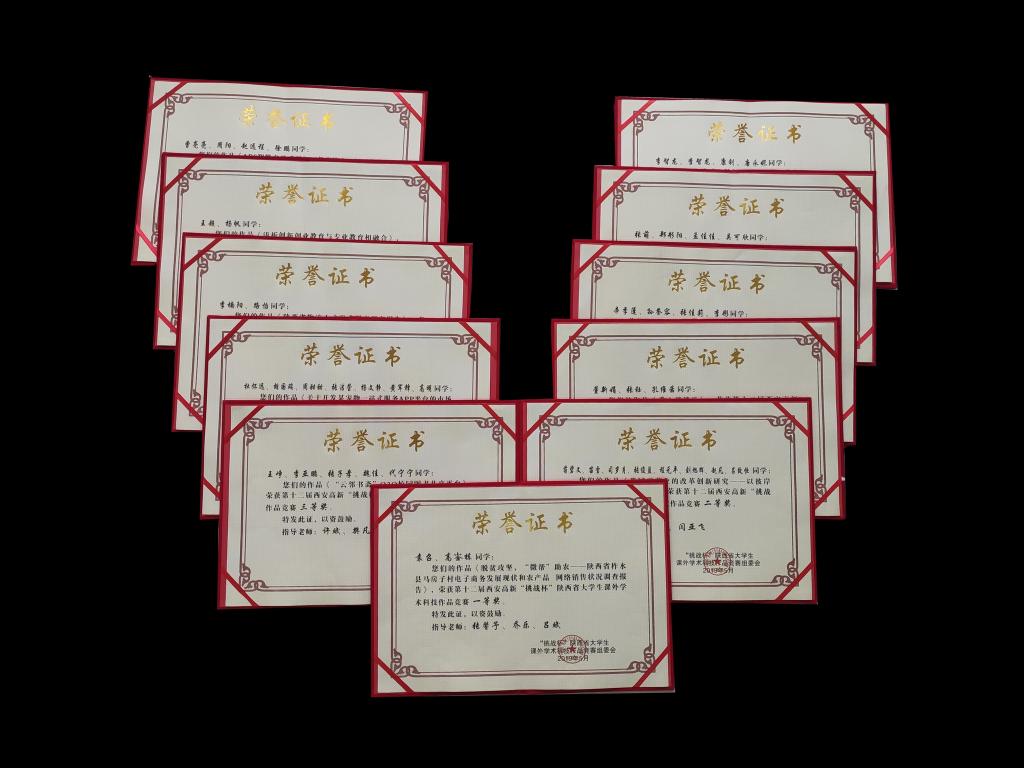 获奖作品中管理学院2项,商学院7项,经济与金融学院2项。其中张馨予、乔乐、吕斌指导的《脱贫攻坚“微帮”助农-陕西省柞水县马房子村电子商务发展现状和农产品网络销售状况调查报告》荣获一等奖;席瑶、王鹏、闫亚飞指导的《我国殡葬业的改革创新研究-以彼岸林-树葬服务平台为例》荣获二等奖;董媛、张雯、闫栋指导的《“监康”追踪行动》,赵莹、郑英指导的《一种新型井盖》,朱龙梅指导的《基于互联网的AR智能实景分拣系统》,朱龙梅、邓迪夫的《爱心消消乐》,许斌、樊凡、何蕾指导的《“云邻书斋”020校园图书共享平台》,王福荣、刘振华指导的《关于开发某宠物一站式服务APP平台的调研报告》,张馨予、席瑶、闫亚飞指导的《陕西省物流人才需求调查研究报告》,何蕾、许斌指导的《浅析创新创业教育与专业教育相融合》,任晓翠、田睿、张雯指导的《APS智能自律手环》9项作品荣获三等奖。