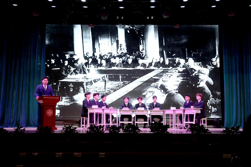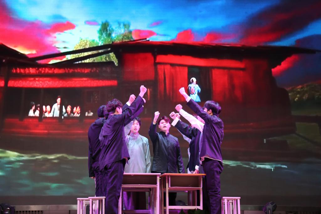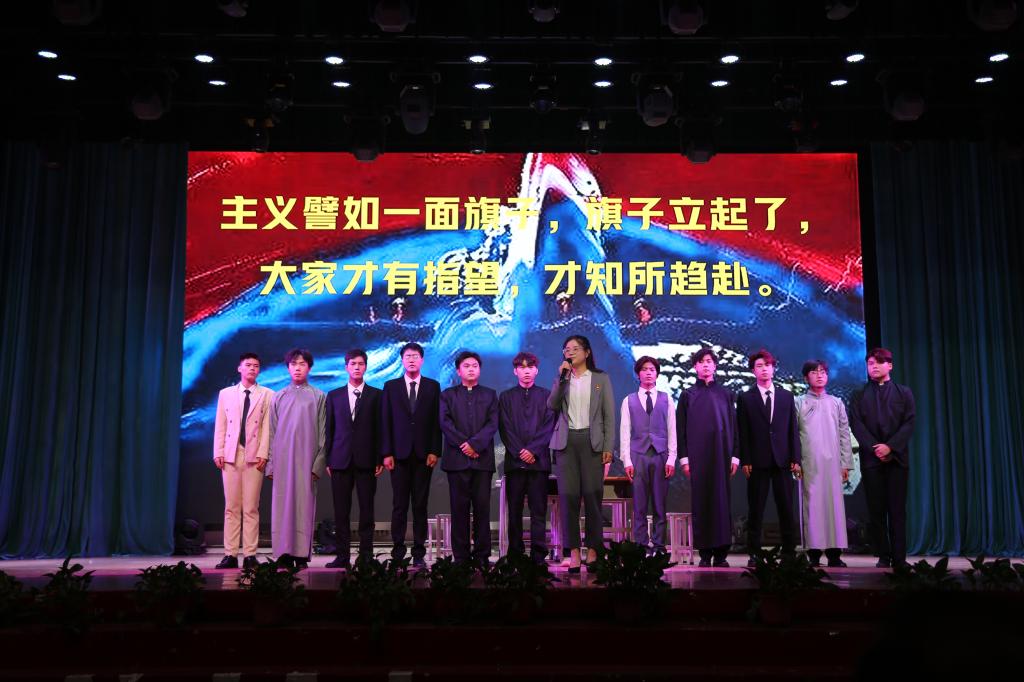 此次舞台剧《寻找思想之光》是由我校马克思主义学院毛泽东思想和中国特色社会主义理论体系概论教研室编排,于2023年12月首次成功上演,经过反复打磨排练,再次在我校公开上演。整部剧由巴黎和会、学生运动到工人运动、南陈北李相约建党、中国共产党第一次全国代表大会召开四幕构成,通过教师导学,学生演绎,呈现了中国共产党早期创始人苦苦追寻救国真理,最终找到了马克思主义这束光,在他的指引下伟大的中国共产党诞生的艰辛历程。观看学生纷纷表示此次展演将党的历史鲜活地表现出来,再次为那段波澜壮阔、开天辟地的历史伟大时刻热泪盈眶。参演同学更是表示,通过这次活动,他们对近代中国的苦难有了更深刻地理解,对党的信仰和忠诚从“指尖”、“笔尖”延伸到“心尖”。这堂舞台上的思政课坚定青年学生对伟大祖国、中华民族、中华文化、中国共产党、中国特色社会主义的高度认同。