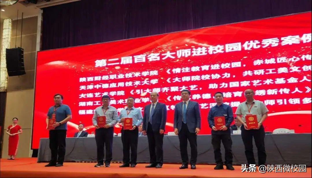 会上,张崇和会长高度赞扬了陕西财经职业技术学院中国工艺美术大师、人文艺术学院院长贺兴文在工艺美术进校园传承非遗、以美育人方面做出的巨大成绩和取得的先进经验。学校人文艺术学院党支部书记兼副院长宋波撰写的案例《情注教育进校园,赤城匠心传记忆》荣获2023—2024年度“百名大师进校园”优秀案例,全国仅有5个学校选送的案例获奖,陕西财经职业技术学院是其中之一。