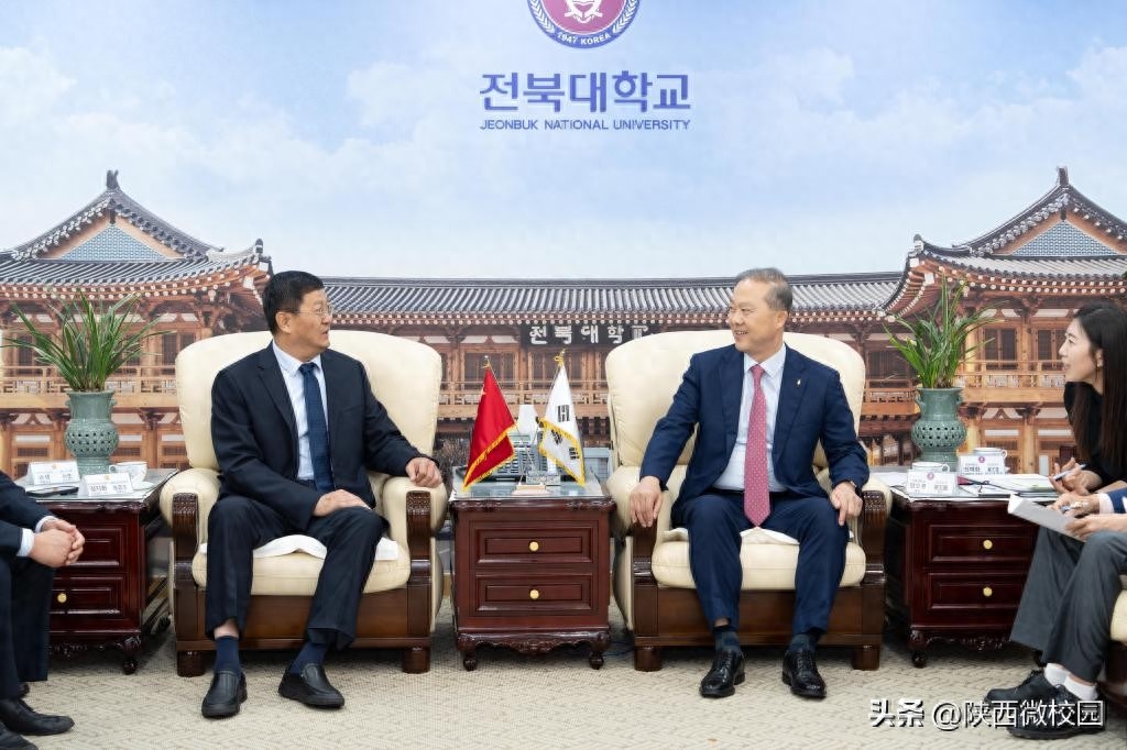 陕西财经职业技术学院党委书记张志华与韩国全北大学校长梁五凤热情交流