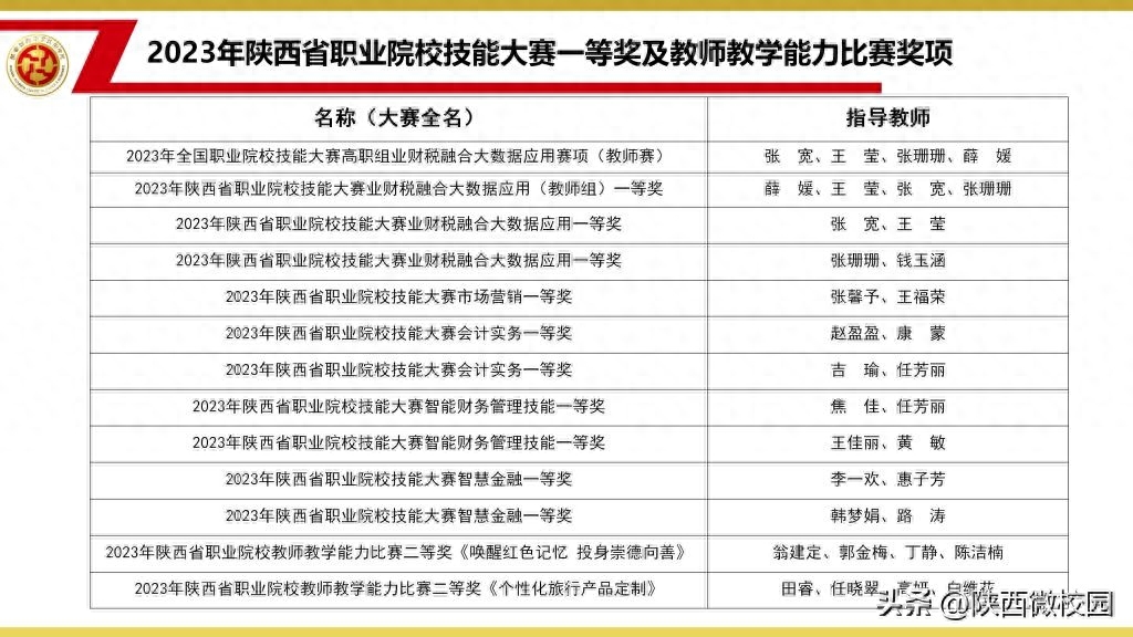 近日,佳音不断,喜报频传,陕西省职业院校技能大赛、陕西省职业院校教师教学能力比赛落下帷幕,陕西财经职业技术学院师生在两大赛中斩获佳绩。