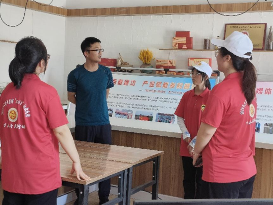 为大力推进数字乡村建设,以数字技术赋能乡村振兴,提升农业农村现代化水平,7月25日,在指导老师党王薇、刘昙的带领下,陕西财经职业技术学院“数”声朗朗实践队来到渭南市富平县宫里镇大樊村的直播基地。渭南市委办公室驻大樊村第一书记王宁馨详细介绍了各种农产品的种植、加工和营养价值,使团队成员对这些产品有了更全面的了解,为即将开始的直播打下良好的基础。