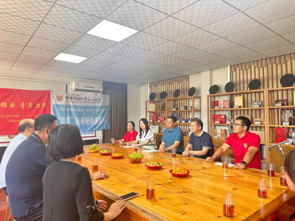 8月3日,陕西财经职业技术学院暑期“三下乡”社会实践“微帮”电商网销服务队在泾阳开启社会实践活动,并在陕西泾阳百富茯砖茶有限公司举行授牌仪式。泾阳茯砖茶发展服务中心党组书记、主任蒙永琦,陕西泾阳百富茯砖茶有限公司总经理易平安,副总经理张莉,陕财职院党委书记张志华,党委副书记朱华斌,数字商务学院党总支专职副书记王华、教师刘振华以及学生志愿者们出席活动。授牌仪式由团委书记张洁主持。