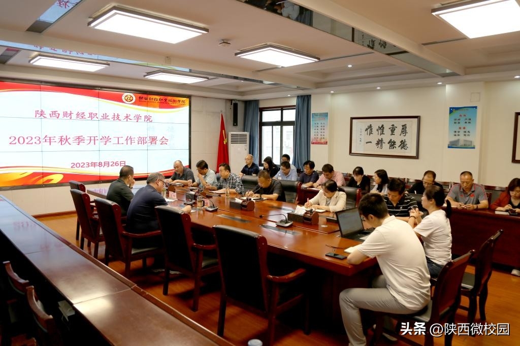立足新起点,奋楫再出发。为全面落实陕西财经职业技术学院2023年高质量发展的目标任务,确保新学期开学工作平稳有序进行。8月26日上午,陕财职院在办公楼四楼会议室召开2023年秋季开学工作会议。院长程书强在会上讲话,副院长雷旭主持会议并部署相关工作。各二级学院、相关处室负责人参会。