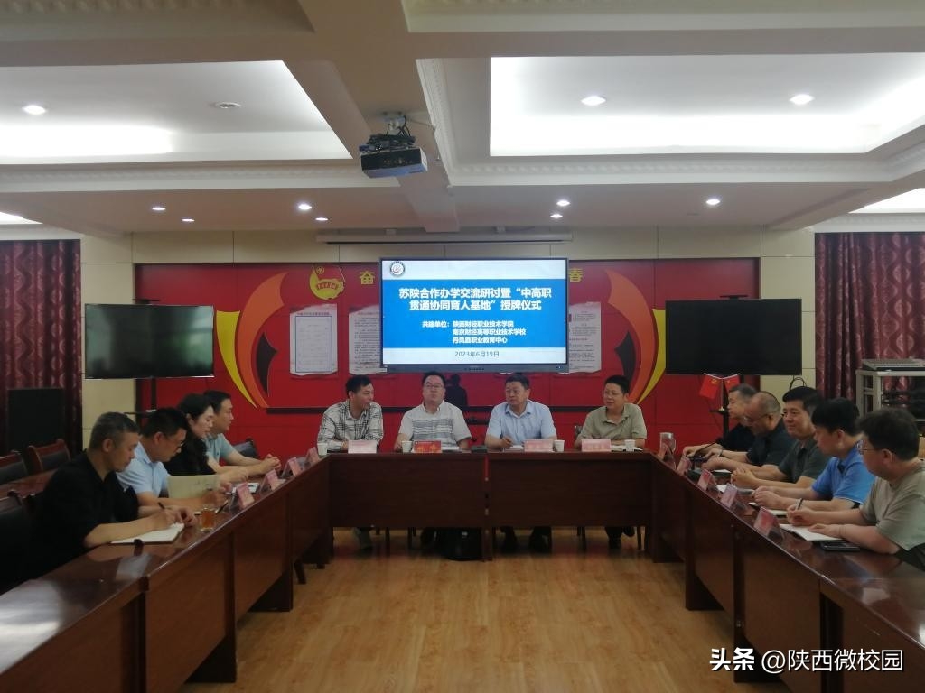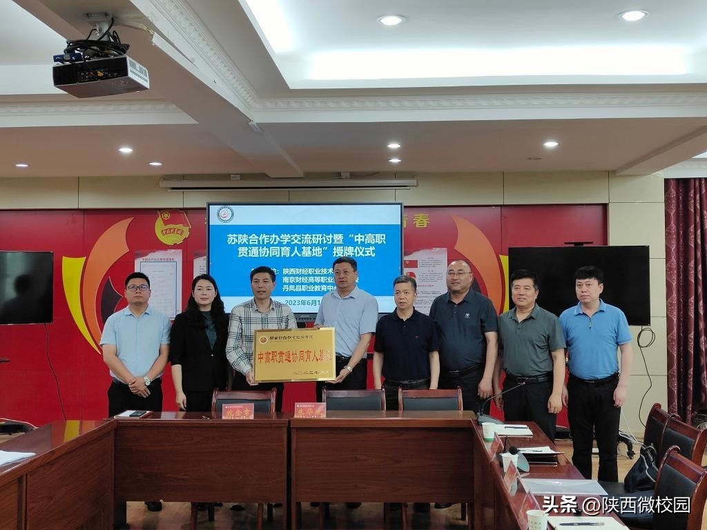 为进一步加强中高职合作,深化中高职教育衔接和人才培养,推进校校合作,6月19日下午,陕西财经职业技术学院党委书记张志华、党委副书记朱华斌一行参加了在丹凤县职业技术教育培训中心举行的“苏陕合作办学交流研讨会”暨中高职贯通协同育人基地授牌仪式。学校党政办公室、招生办公室、工会等部门相关负责人陪同。南京财经高等职业技术学校校长姚峰、副校长杨宇净、张炎,丹凤县职业技术教育培训中心党支部书记刘书良、主任杭金章、副主任董黎娜、耿李元等参加座谈。