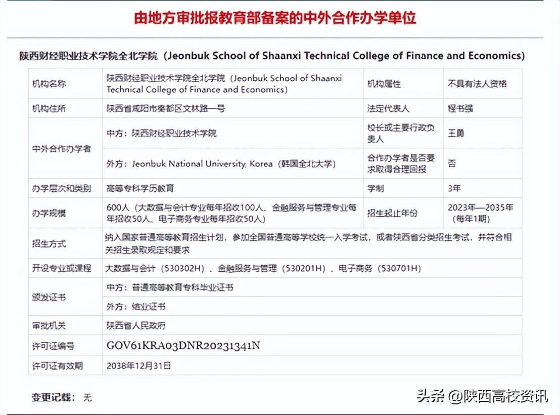 近日,从教育部获悉,陕西财经职业技术学院与韩国全北大学合作举办的中外合作办学机构——陕西财经职业技术学院全北学院已正式获批。