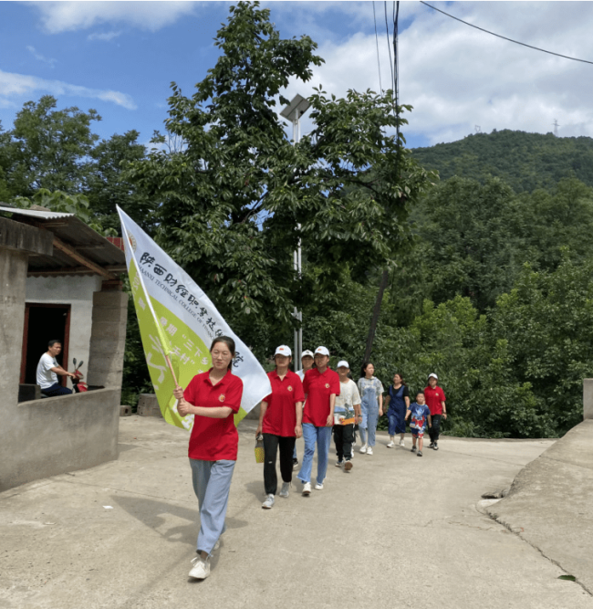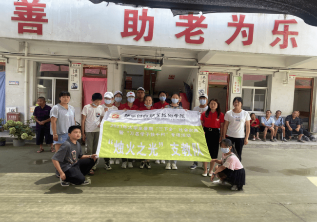 7月23日,陕西财经职业技术学院2021年大学生暑期“三下乡”暨万名学子扶千村社会社会实践活动“烛火之光”支教队志愿者们携手周垣小学学生饱含激情地踏上关爱老人之路。