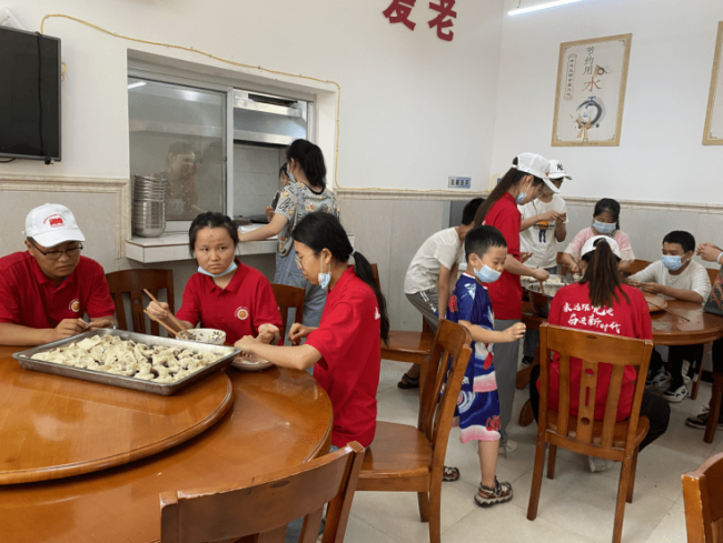 陪老人聊天结束,没顾上休息,志愿者们就拿出先前买好的肉、鸡蛋和菜开始包饺子,包饺子的志愿者和护工阿姨配合默契,洗菜切菜、调饺子馅、包饺子一气呵成,大家边聊天边忙活,整个敬老院内弥漫着温暖祥和的气氛。